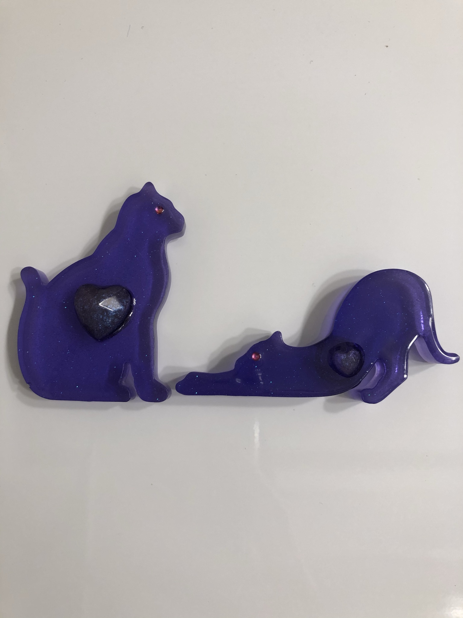 Purple cats with hearts magnet set.